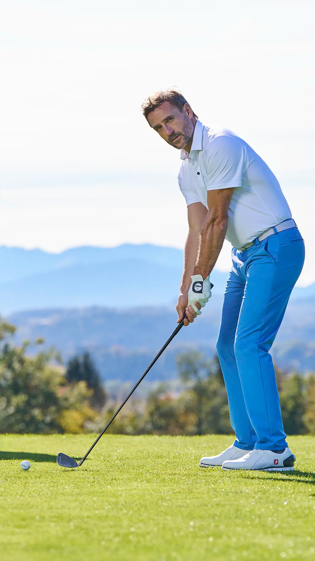 When it comes to our golf trousers, we exclusively use the innovative functional fabric REPREVE®, the world’s leading recycled fibre with outstanding properties. This breathable, thermo-regulating fibre helps maintain a consistent body temperature all year round. Our chinos are also super stretchy, flexible and shape-retentive, allowing you to perform at your best on the green. The water-resistant, quick-drying fabric provides extra comfort. These trousers feels wonderfully soft against the skin and are incredibly comfortable to wear!