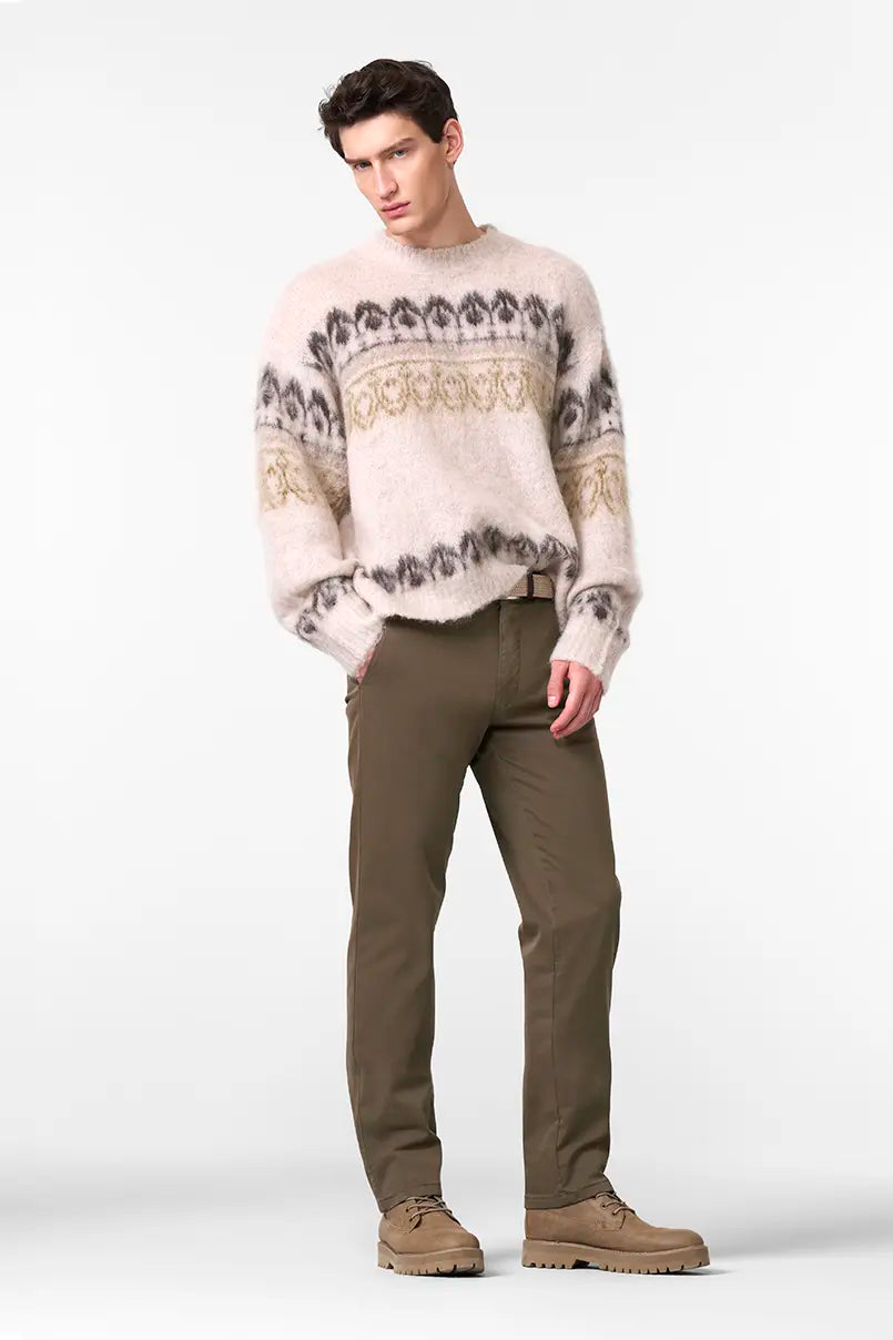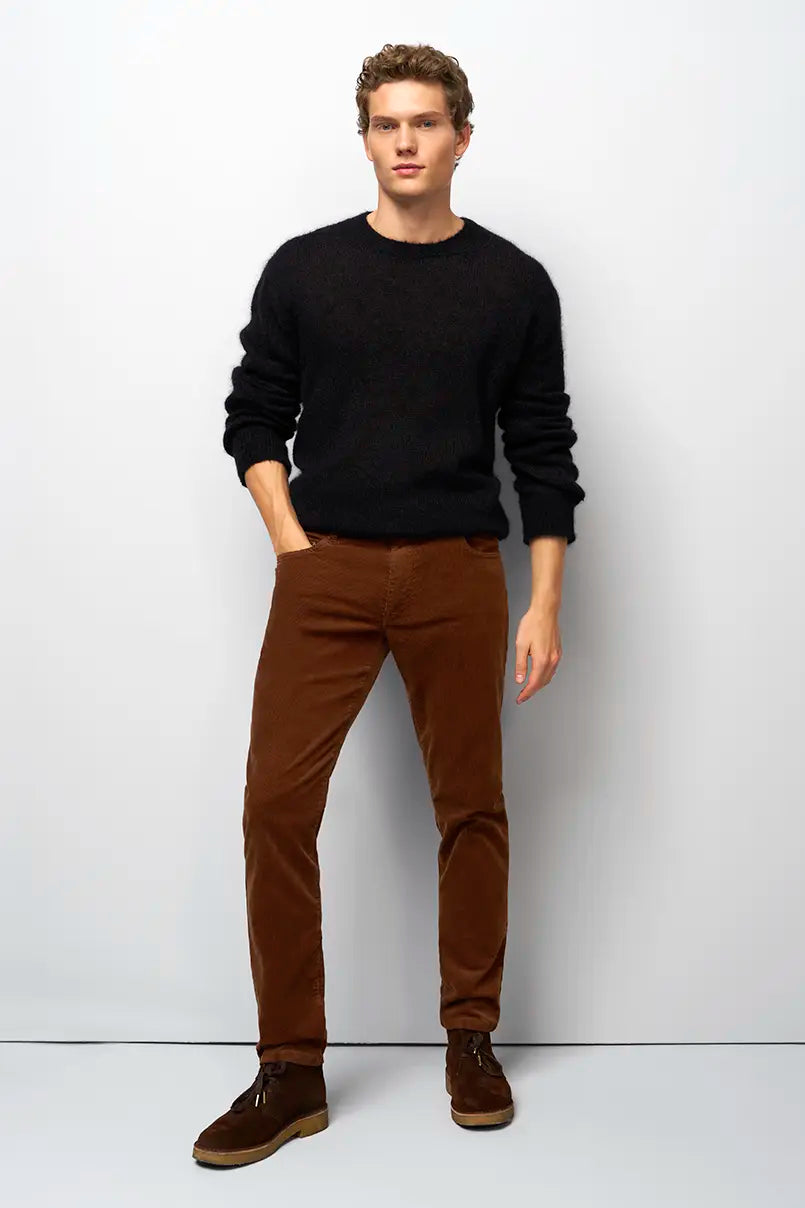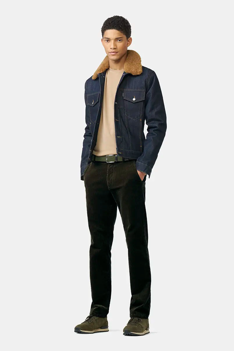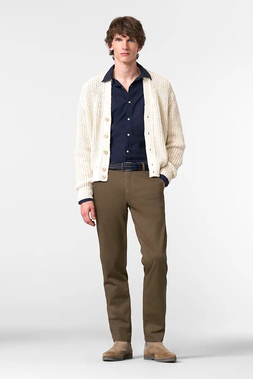 A man’s outfit is based on the right trousers. MEYER guarantees you the perfect fit and careful workmanship in its own European production facility – fair, environmentally conscious and 100% climate neutral. Discover our diverse M|5 styles in the jeans category. Whether slim, super slim or regular, you’re sure to find the perfect fit for you. When it comes to cotton trousers, we offer you various styles and models along with different qualities of fabrics. Simply visit our fit advisor to see what’s available. The most important thing: all of the cotton comes from controlled organic cultivation. This is not the only reason why MEYER is one of the TOP BRANDS when it comes to sustainability. Our production is certified by Fairtrade and MADE IN GREEN by OEKOTEX. We also offer trousers made from certified FAIRTRADE cotton. Current trends in men’s fashion – for instance, in summer, it’s all about linen trousers or lightweight organic cotton fabrics. Others simply prefer shorts. In winter, corduroy and thermal trousers as well as thicker fabrics are very popular with men. The cotton trousers and jeans from MEYER and M|5 offer the highest quality, which you can enjoy for a long time to come. Our trousers for men are also available in the online shop in large and plus sizes.